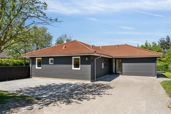 Ikke langt derfra, i Fjellerup Strand, finder vi et andet fritidshus på Skovvej 19. Her får man 109 m² fordelt på 5 værelser. Grundarealet er på 725 m².